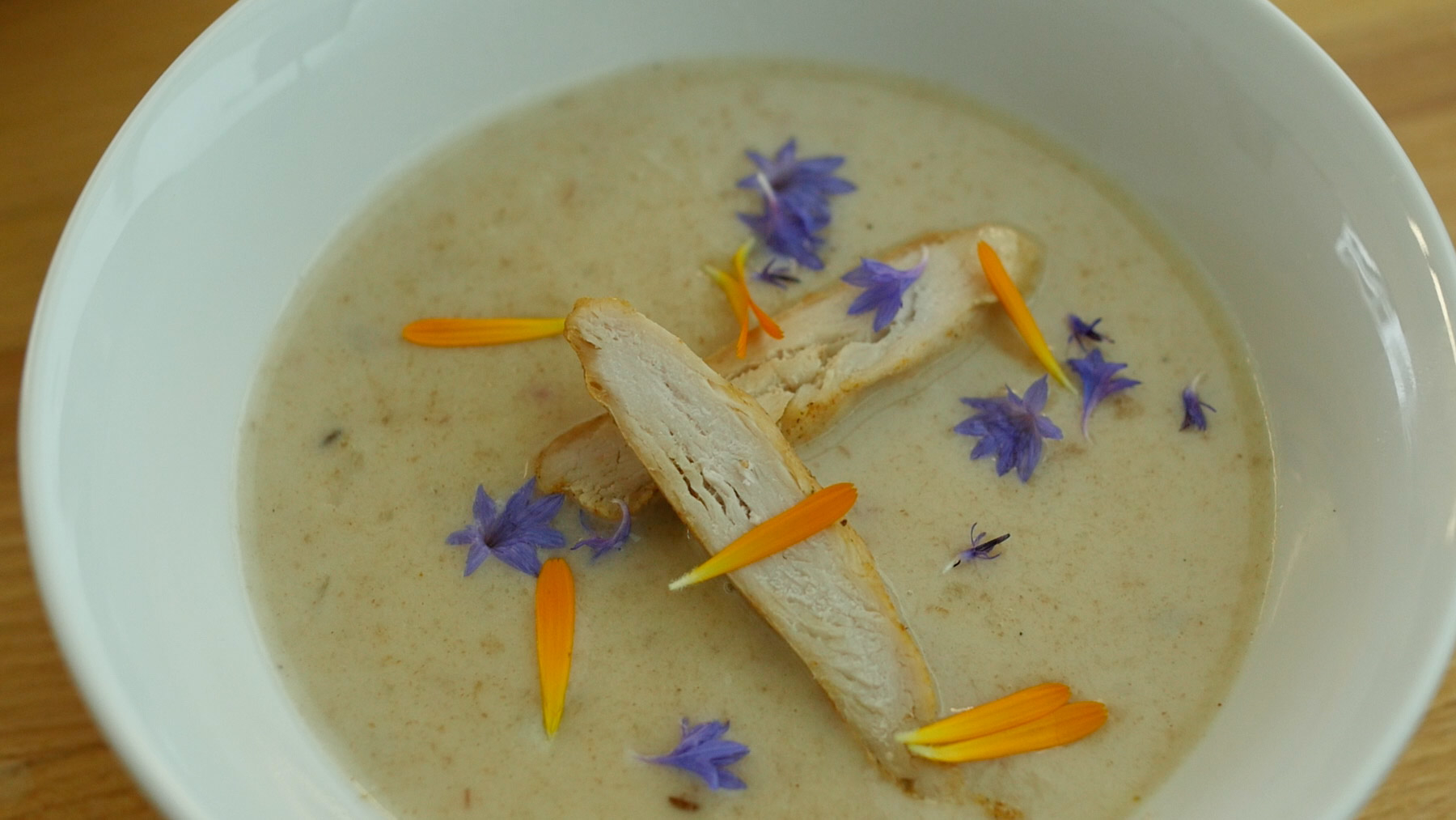 - Bouillon de légumes avec des lamelles de poireau étuvées.